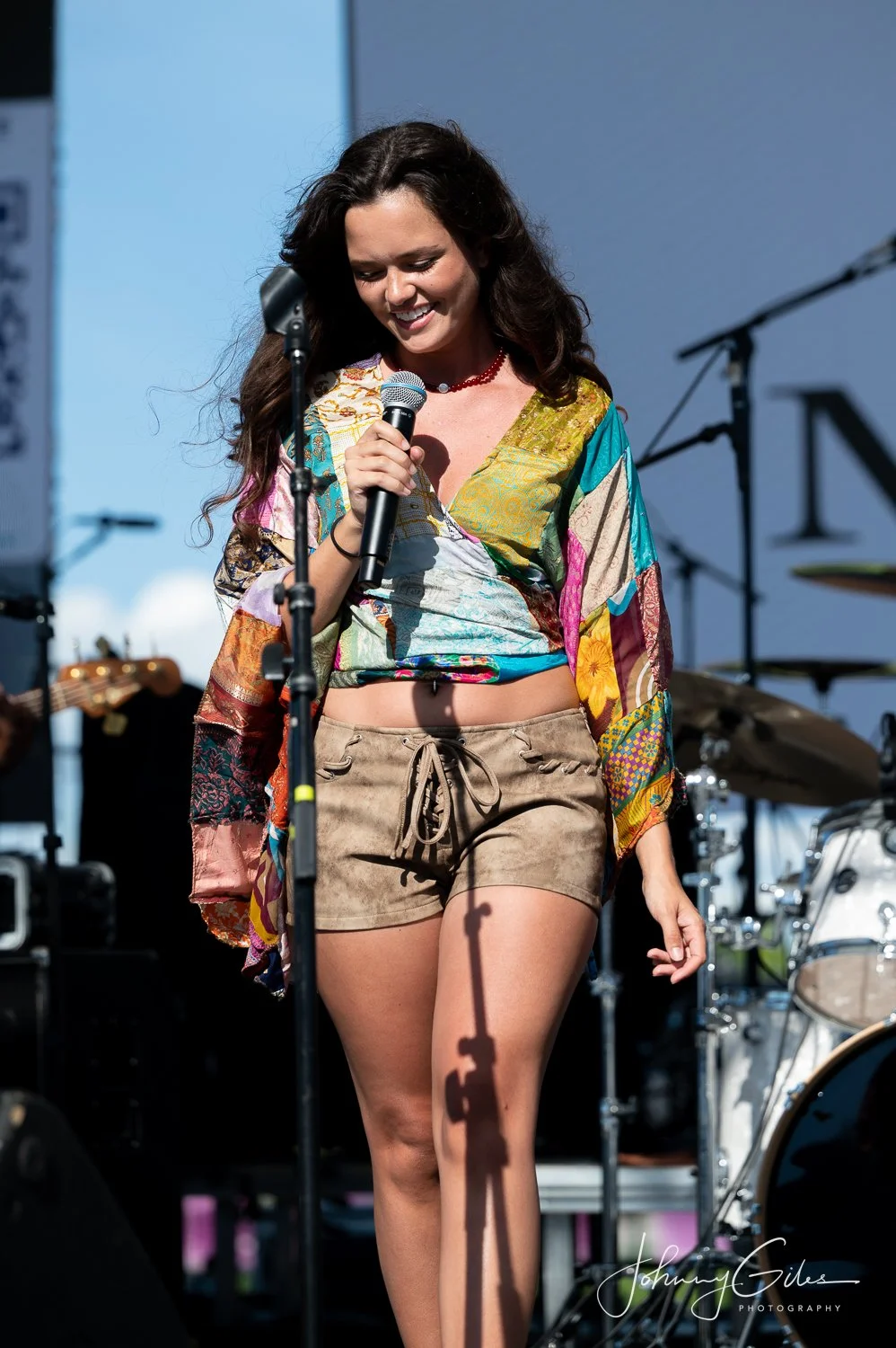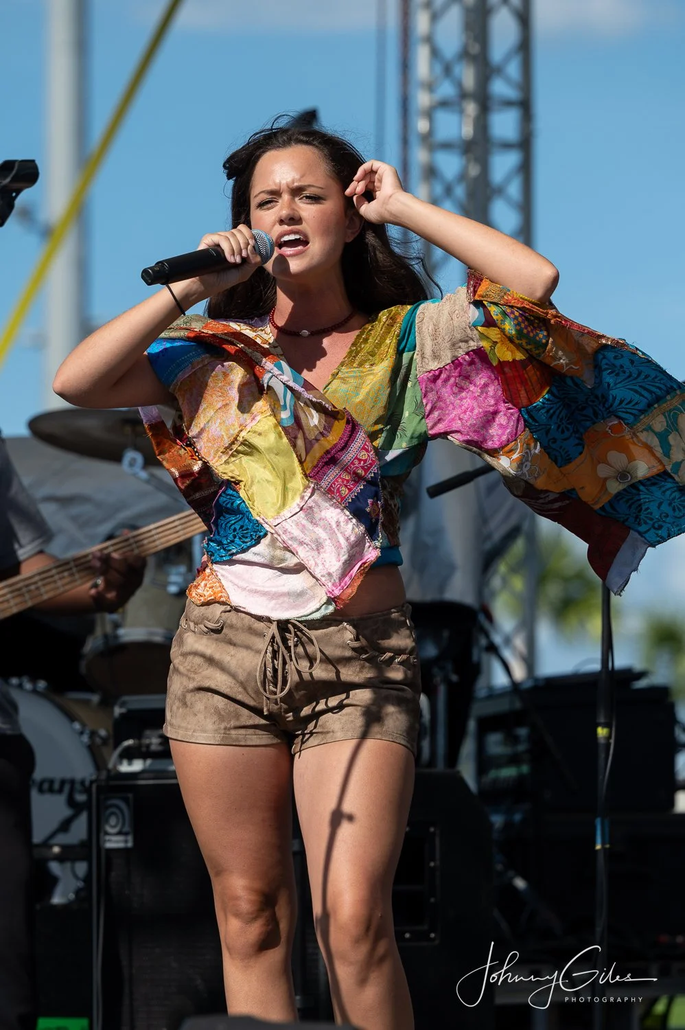 Bishop’s delivery carried a mix of pop influence and country edge, with a vocal style that favored projection and clarity. She moved comfortably across the stage, interacting with the audience in a way that felt natural rather than rehearsed. Even in the early time slot, her set drew a noticeable response, signaling strong local support and setting a solid foundation for the artists that followed.