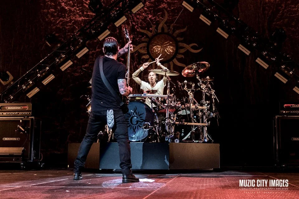 Godsmack brought a commanding, high-impact performance to Bridgestone Arena on April 16, 2019, delivering a show built on power, discipline, and arena-scale confidence. Touring behind When Legends Rise, the band balanced newer material with career-defining staples, creating a set that felt both current and rooted in the aggression that made them one of modern metal’s most reliable live draws.