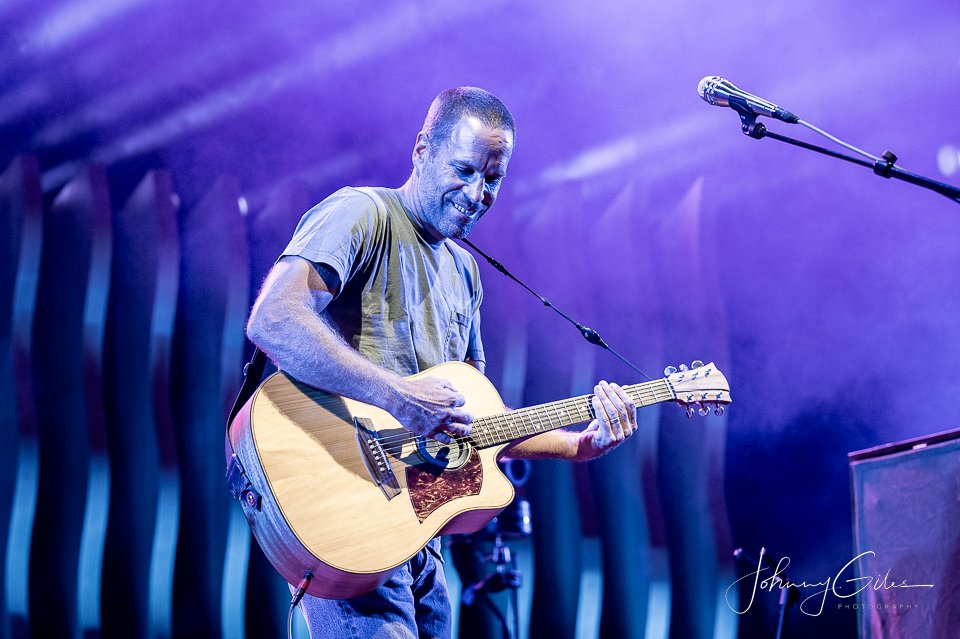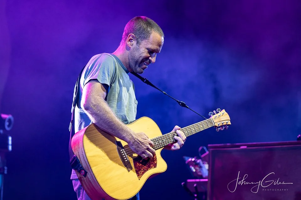 Jack Johnson delivered a relaxed, groove-driven performance at Ascend Amphitheater on August 24, 2022, turning the riverfront venue into a mellow, communal space under the night sky. As the sun set and the lights came up, the atmosphere shifted into something intimate and unhurried, perfectly matching Johnson’s understated approach and rhythm-first songwriting.