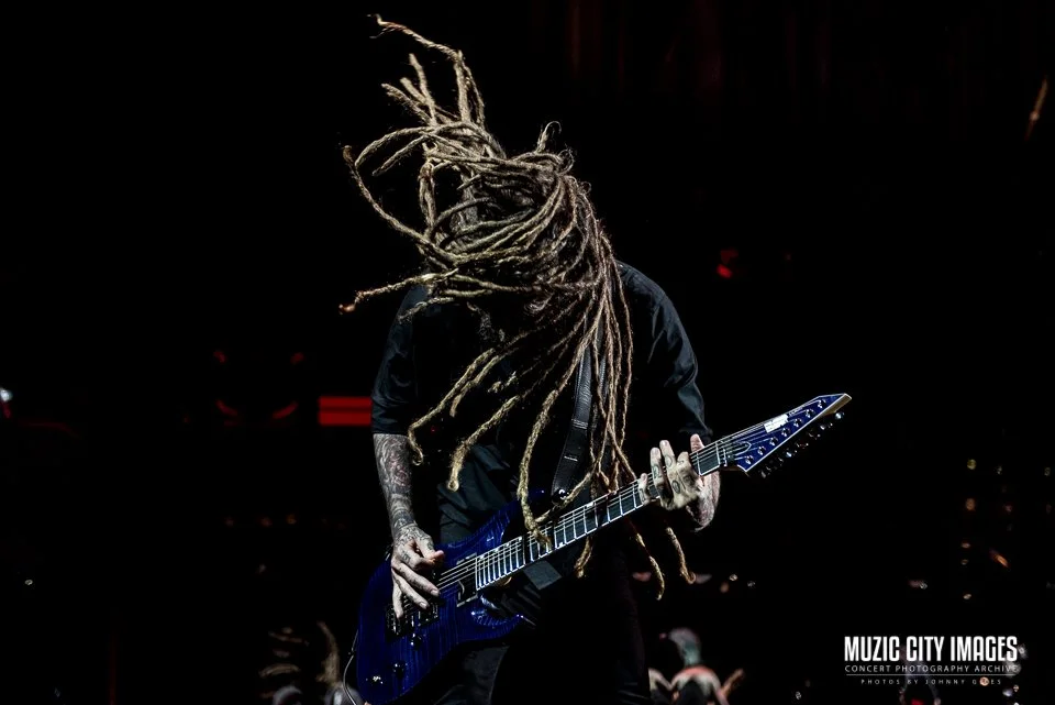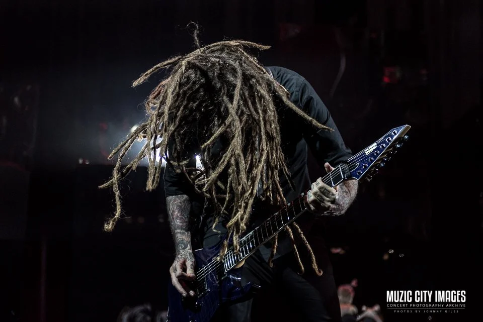 Korn delivered a punishing, tightly controlled performance at Bridgestone Arena on July 26, 2019, bringing their signature blend of heaviness, atmosphere, and emotional intensity to a packed Nashville crowd. Known for translating deeply personal material into massive live moments, the band balanced raw aggression with disciplined execution, creating a show that felt both visceral and deliberate.