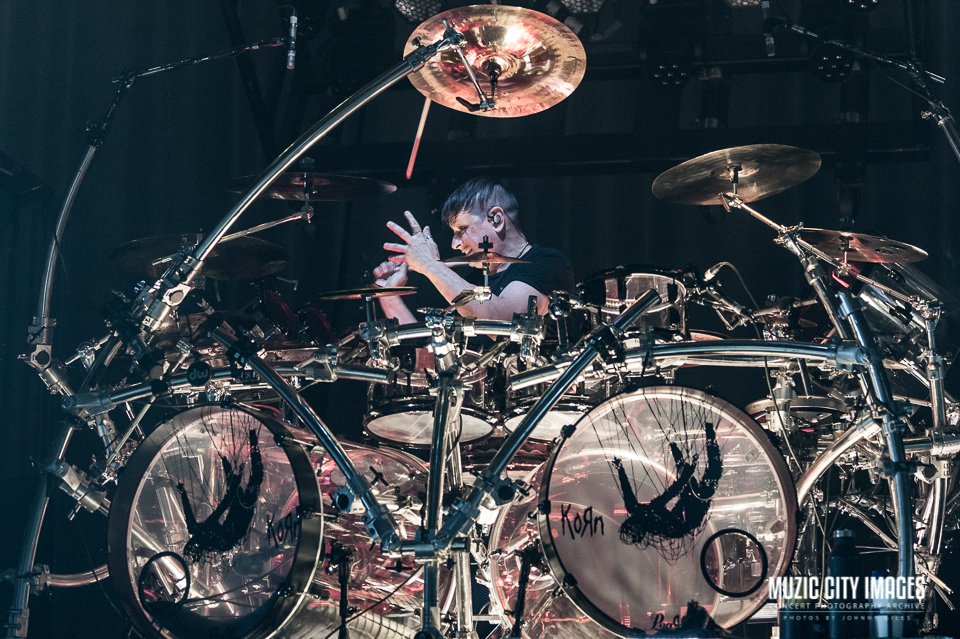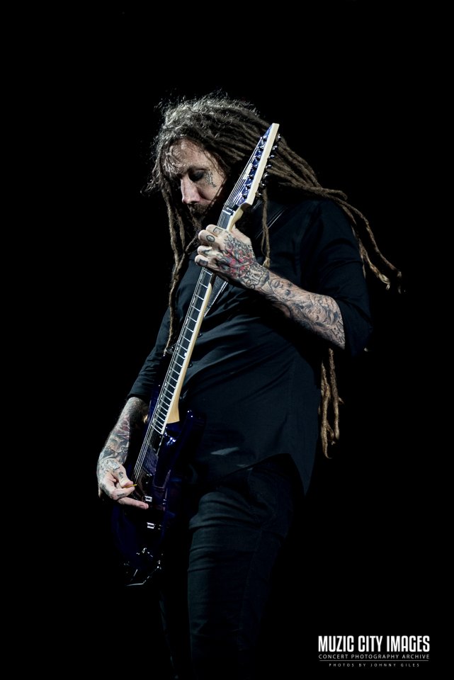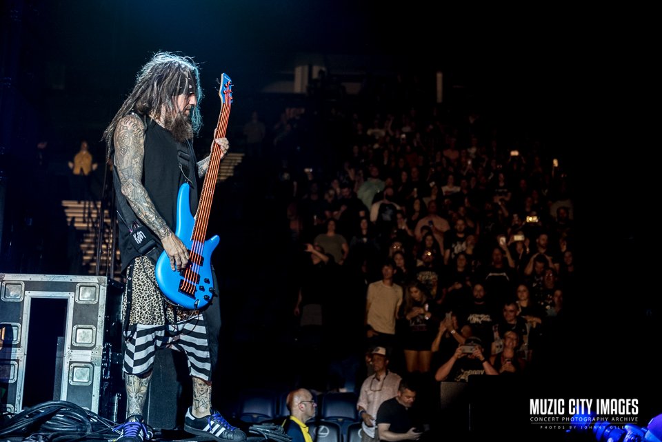 Musically, the band was locked in. James “Munky” Shaffer and Brian “Head” Welch delivered thick, percussive guitar tones that filled the room without becoming muddy, while Fieldy’s distinctive bass lines punched through the mix with unmistakable snap. The rhythm section drove the set with relentless precision, keeping momentum high without sacrificing dynamics.