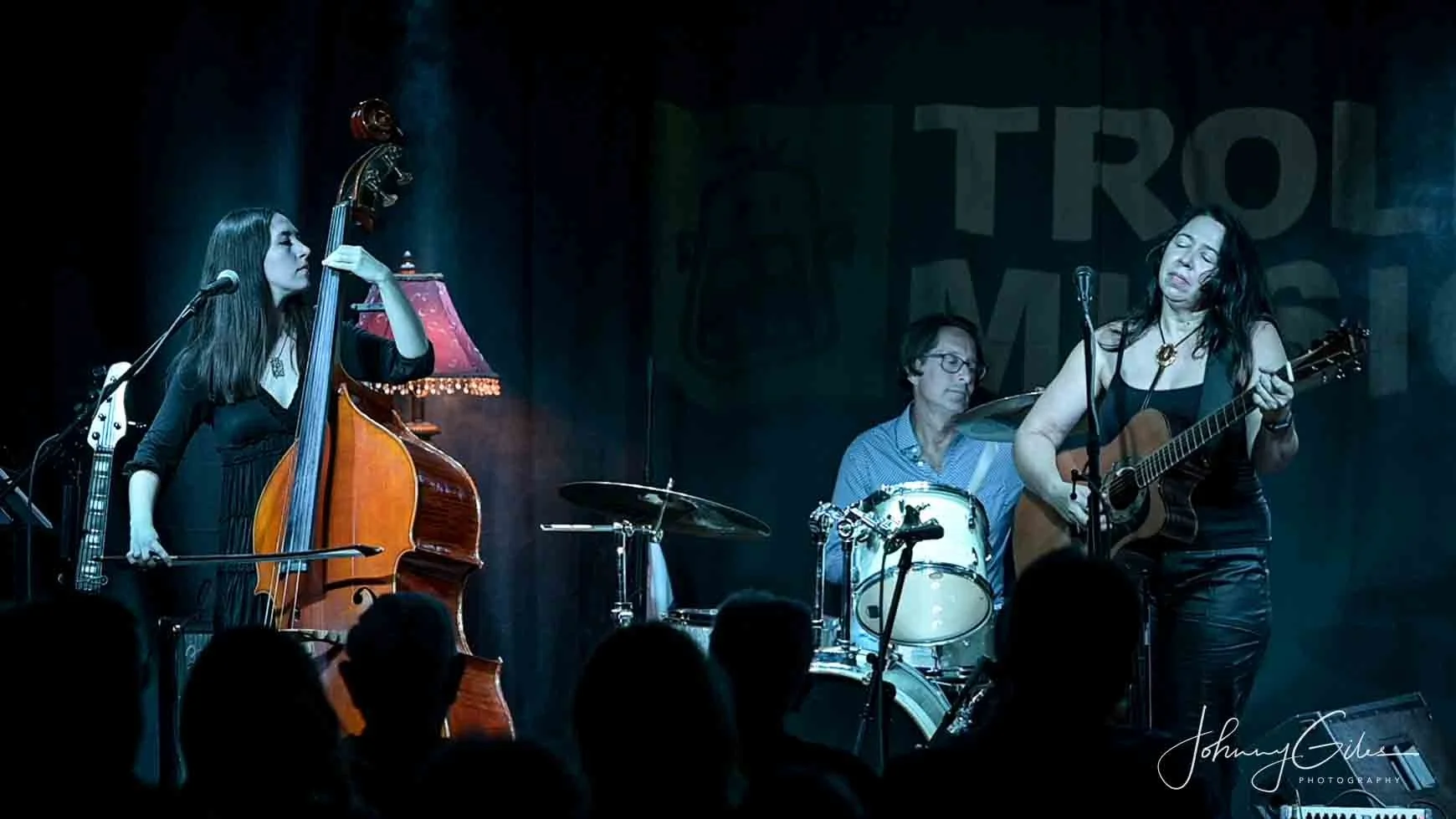 Fawn Holley anchored the low end on both stand-up and electric bass, adjusting tone and feel to match the arrangement. Vince Spino’s drumming remained tight and responsive, adding drive without overwhelming the acoustic textures central to the band’s sound. As a trio, they maintained steady forward motion, balancing technical execution with crowd awareness.