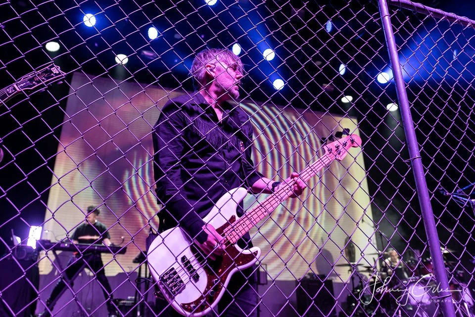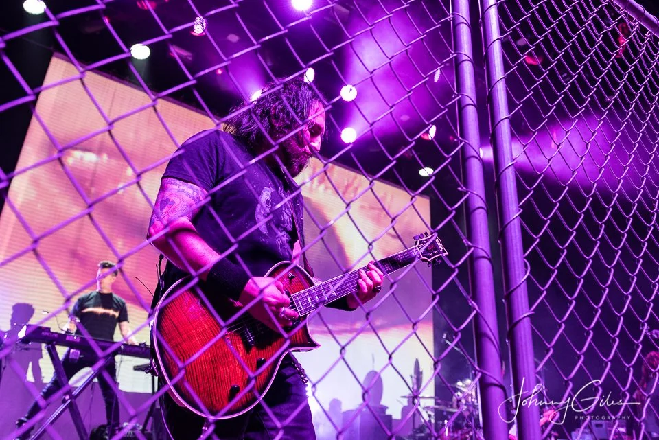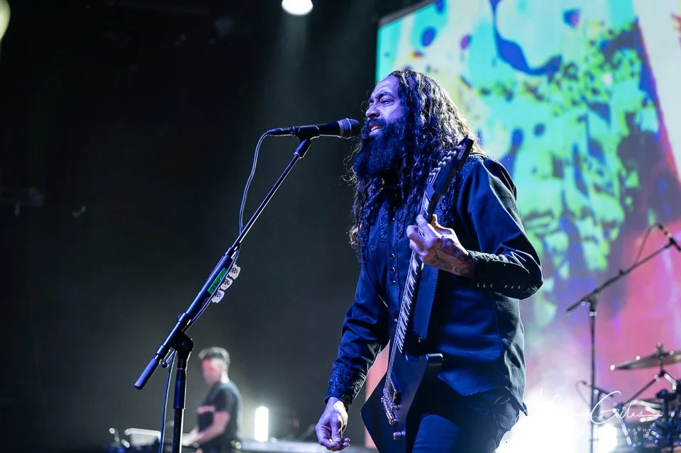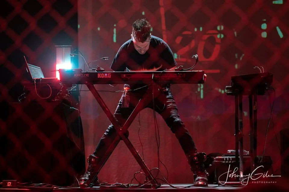 Musically, the band operated with militant discipline. Guitars were thick and grinding, programmed elements locked tightly with live drums, and the rhythm section maintained an unyielding pulse that drove the set forward without relief. Transitions were abrupt and purposeful, reinforcing the band’s confrontational aesthetic. The Ryman’s acoustics amplified the density of the sound, making the performance feel immersive and overwhelming by design.